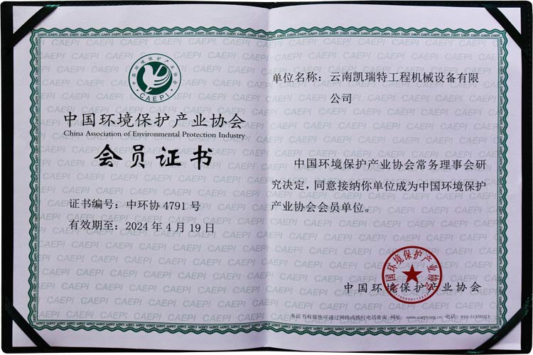 中國環(huán)境保護(hù)產(chǎn)業(yè)協(xié)會(huì)會(huì)員證書