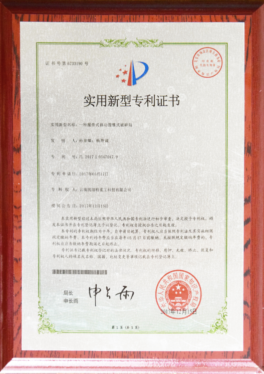專(zhuān)利證書(shū)【履帶式移動(dòng)圓錐式破碎站】