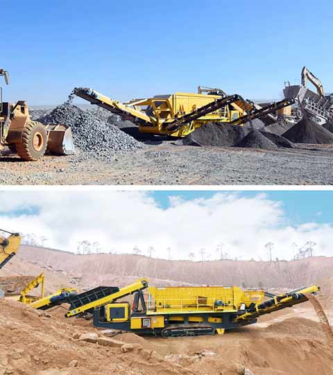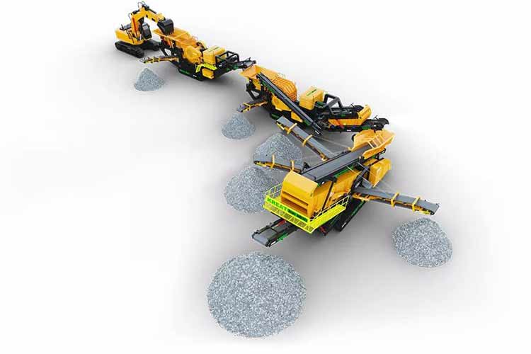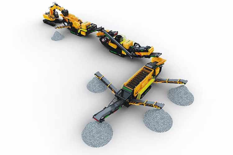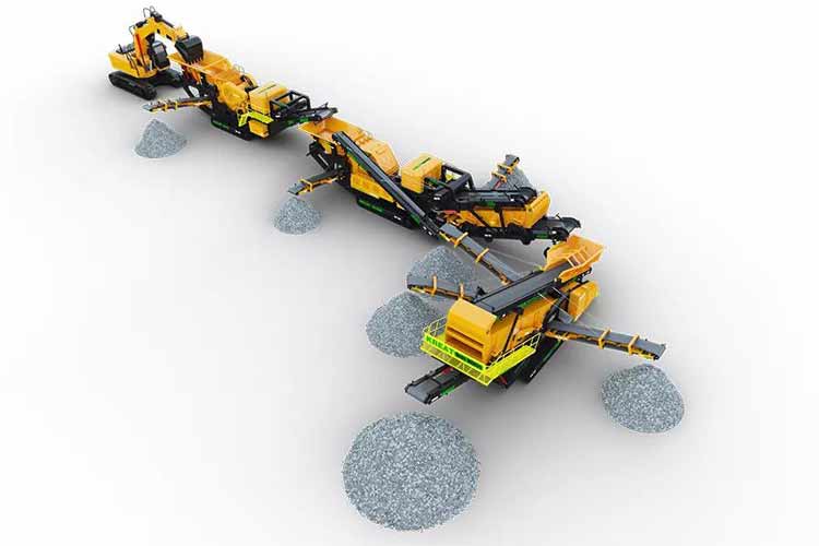 履帶移動(dòng)顎式破碎站+履帶移動(dòng)圓錐式破碎站+履帶移動(dòng)水平篩分站
