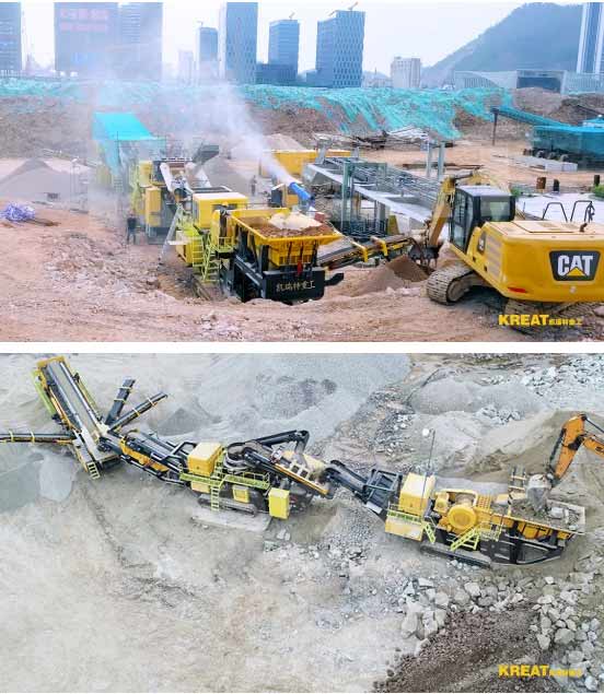 履帶移動(dòng)顎式破碎站+履帶移動(dòng)反擊式破碎站+履帶移動(dòng)篩分站