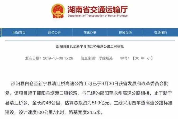 湖南省邵陽(yáng)縣白倉(cāng)至新寧縣清江橋高速公路項(xiàng)目