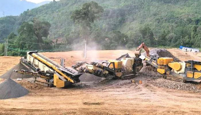 花崗巖破碎:移動(dòng)顎式破碎站+移動(dòng)反擊式破碎站