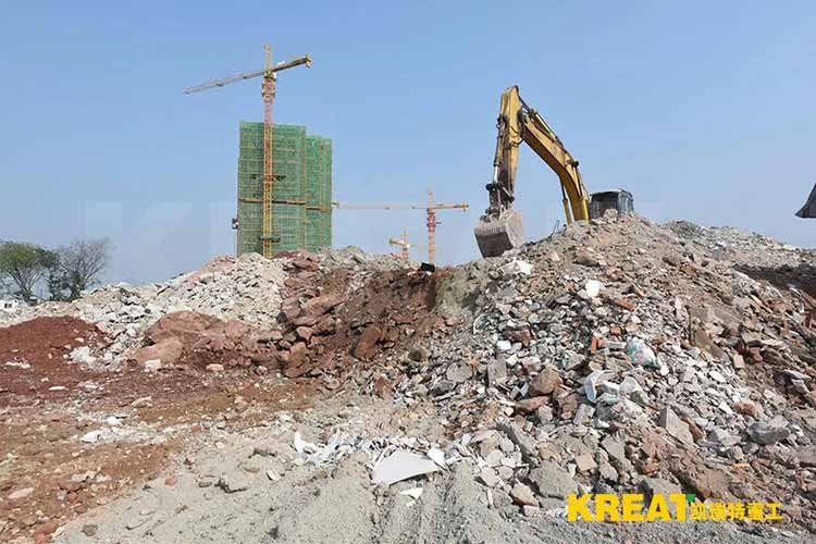 建筑垃圾原料建議先進(jìn)行預(yù)處理,包括人工手動(dòng)分揀大型裝修垃圾以及采用液壓錘將過大塊料減小,分揀去除大塊雜物等后,將建筑垃圾進(jìn)行初次破碎,然后進(jìn)行初次篩分,分離出雜土,并可通過除鐵器將建筑垃圾中的鋼筋及鐵制品分離出來,這樣可保證破碎篩分后的成品料質(zhì)量!