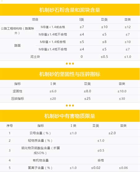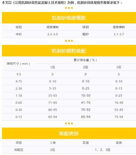 本文以《公路機(jī)制砂高性能混凝土技術(shù)規(guī)程》為例,機(jī)制砂具體規(guī)格參數(shù)要求如下: